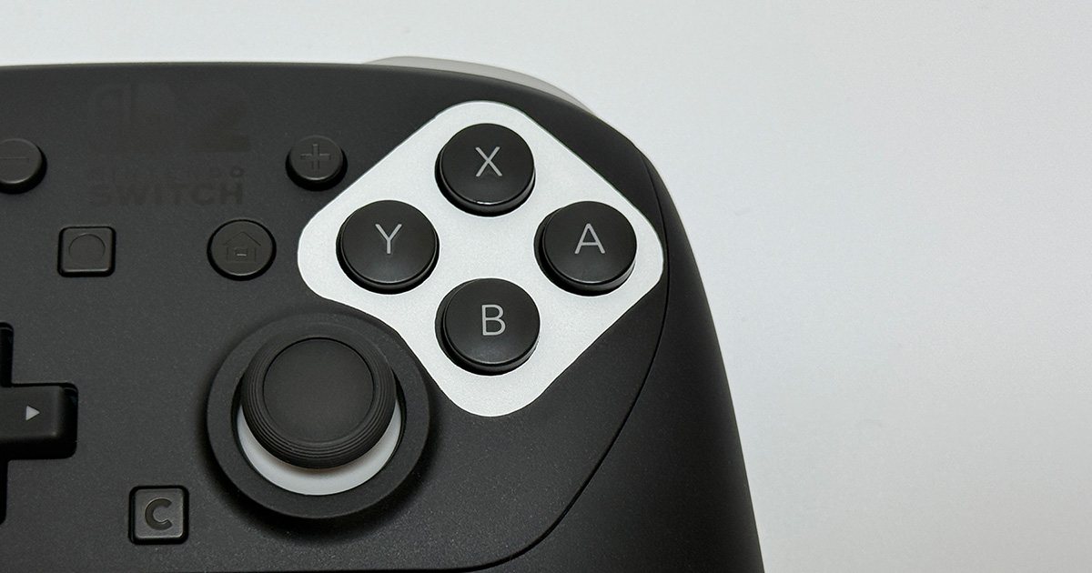ABXYボタン周りのステッカーは左右上下非対称で、位置決めはほぼ確定するので難しくありません。
