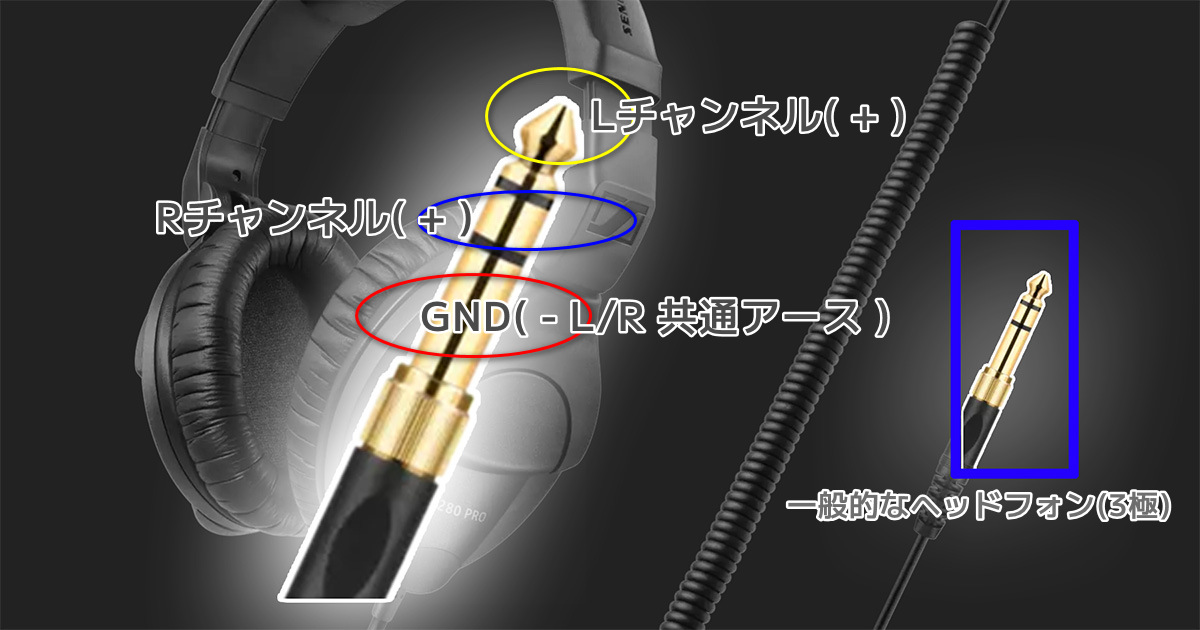 例えばヘッドフォンで有名なゼンハイザーのヘッドフォン( マイク無し )HD 280 PROの3極プラグを見てみましょう。